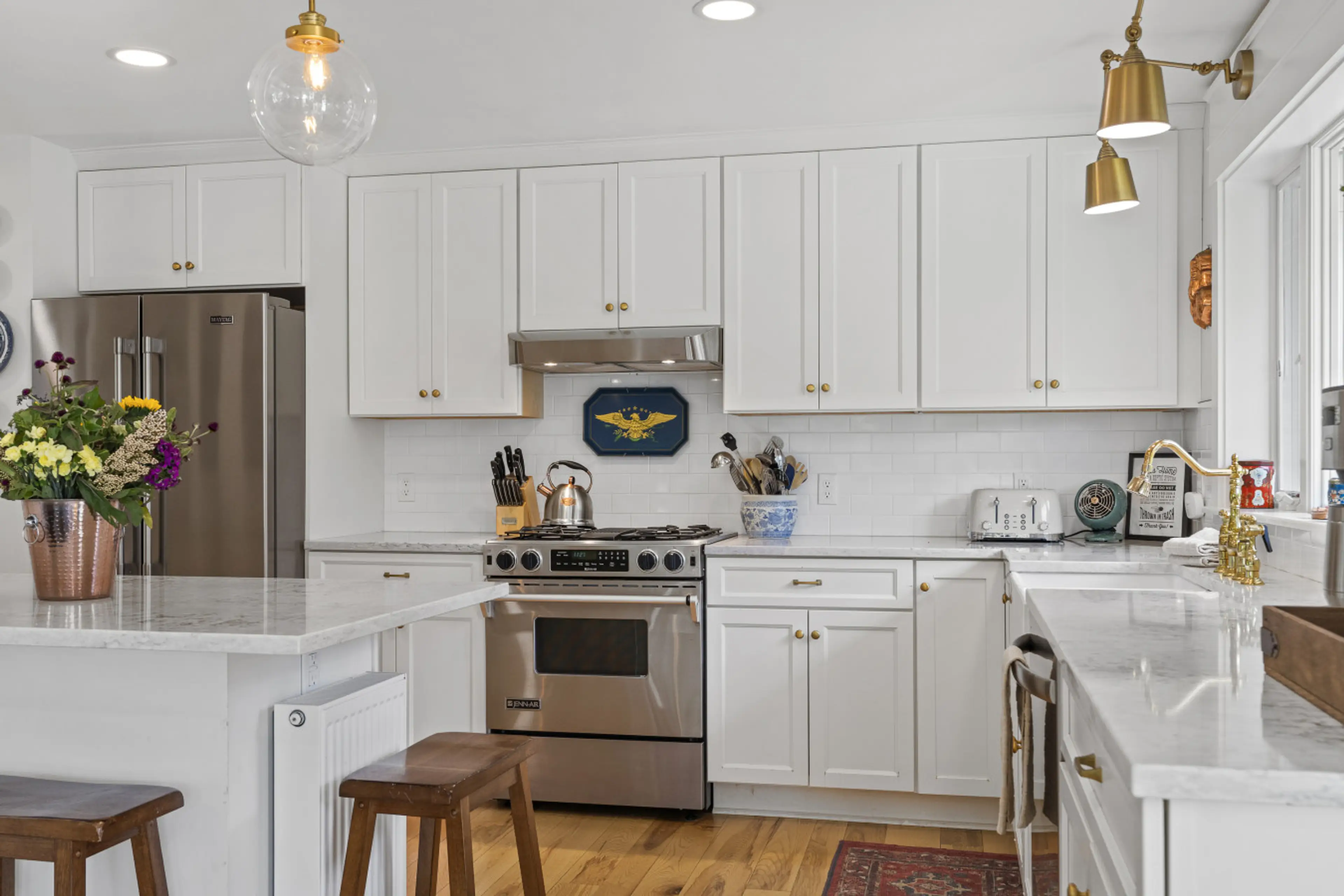 Sunny, expansive property on Damariscotta Lake The home’s layout is ideal for entertaining large gatherings with a centrally located, fully equipped kitchen leading to a dining area with seating for up to 10. A beautiful light-filled family room offers panoramic views of the surrounding lawns, towe...